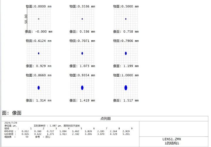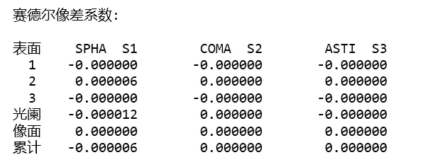 透镜物方数值孔径为0.5,则物高0.6mm范围内的像点均位于艾里斑范围内,赛德尔系数说明透镜在这种条件下确实几乎不产生球差和彗差。