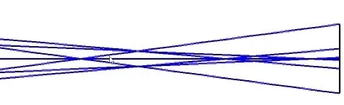 我们在ZEMAX软件中建立一个单透镜的模型,焦距大约为200mm,入瞳直径大约为50mm,大家可以在像面位置看到不同孔径带光线的焦点分布,这种现象就是球差。
