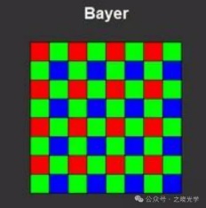 对于彩色图像,还需要介绍拜尔阵列。拜尔阵列(Bayer filter array)是数码摄影中用于实现色彩分离的一种滤光片阵列。它由红、绿、蓝三种滤光片按照特定的排列方式组成,覆盖在图像传感器的感光元件上。由于拜尔阵列的滤光片具有方向性,对入射光的方向较为敏感,因此对主光线入射角有一定的要求。