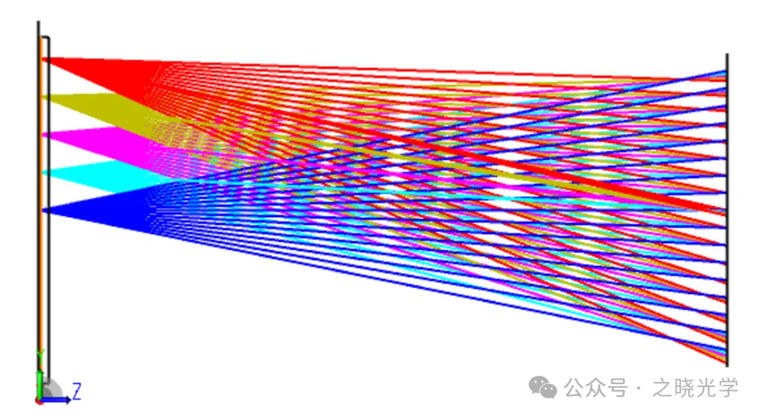 在某些特殊设计中,适当倾斜或旋转透镜可以改变光线的传播方向,从而调整 CRA。例如,将一片透镜绕光轴旋转一定角度,可以使主光线在像面上的入射角发生相应的变化。但需要注意的是,透镜的倾斜和旋转可能会引入其他像差,如像散和畸变等,因此需要综合考虑并进行优化。对于系统中的滤光片、反射镜等光学元件,其安装角度也会影响光线的传播路径和 CRA。例如,将滤光片以一定的角度安装在光路中,可以使光线在透过滤光片后改变传播方向,从而调整主光线的入射角。再比如菲涅尔透镜在一些特定光路中可以作为场镜,调节光线传播方向,保证系统正常使用,如下图所示。