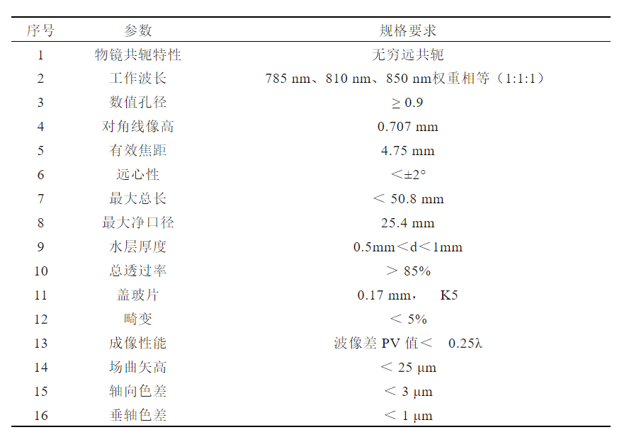 不同类型光学系统对于口径的表示方式不同,对于显微系统,我们主要考虑的是物方的数值孔径NA。根据光学设计赛道本赛题细则要求,本系统的口径为:NA≥ 0.9