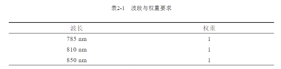 波段范围通常可以直接由总体确定,根据光学设计给定指标要求,本系统的波长与其权重选取如表2-1所示: