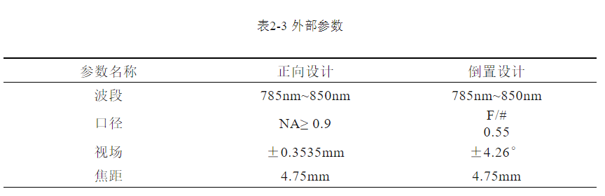 考虑到优化效果及设计速度,本系统采取倒置设计的方法,所以口径的表征参数需要由NA变为F数。下面根据NA与F数的对应关系进行计算: