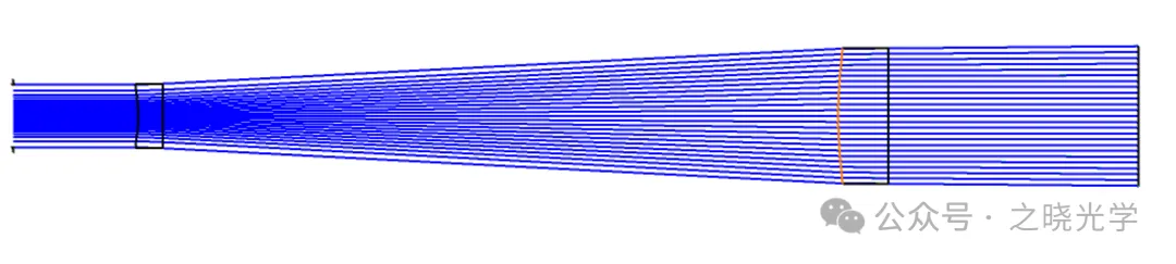 我还是拿之前演示过的一个激光整形系统为例,光学系统图如下,该系统入射出射均为平行光,同时起到扩束和整形的作用。一般成像系统看的点列图、MTF曲线和波前都难以直接反映能量分布情况,那么这个时候我们如何定量地分析整形效果呢?