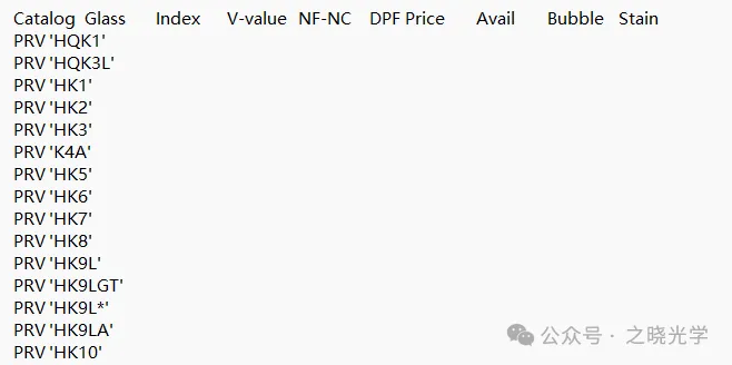 如果大家用的是老版本CODEV,可能会发现导入最新的玻璃库不太方便。在之前的文章中我已经介绍过了利用CODEV宏快速导入最新玻璃库的方法,大家可以点击下面的链接回顾。通过这种方法,我们可以批量地把玻璃材料添加到自定义玻璃库中,如下图所示。