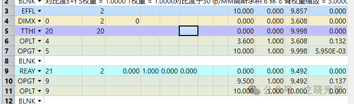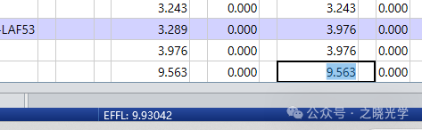 那么,为了避免这样的麻烦,我们应该考虑到对视场进行一定复核。在设计的后期,考虑到畸变,我们可以首先给定一点视场或像高的余量,使实际视场可以略大于指标要求。同时,我建议使用视场角输入外部参数,用光线坐标作为操作数直接约束实际像高,把焦距作为一个可以浮动的量,同时约束畸变大小。
