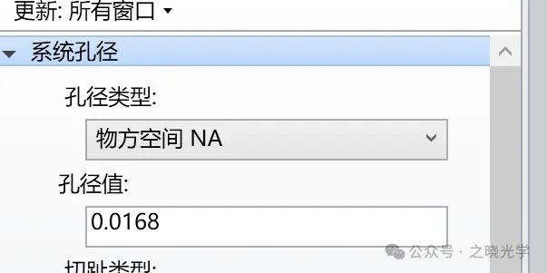 倒置后,此时物方的NA变为像方,在软件中输入时,没有一个像方NA的选项,假设此时我们还是按物方NA输入,则数值孔径应为: