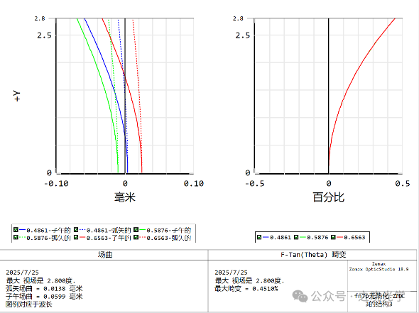 后截距21.59mm,畸变不大于0.5%,满足指标要求,同时系统总透镜数较少,满足轻量化要求。