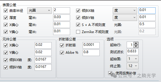 分视场考虑,中心视场有98%的概率可以保证55线对处MTF大于0.59,0.7视场有98%的概率可以保证55线对处MTF大于0.49,满足要求,在现有公差分配基础上,可以适当放宽不敏感的公差。