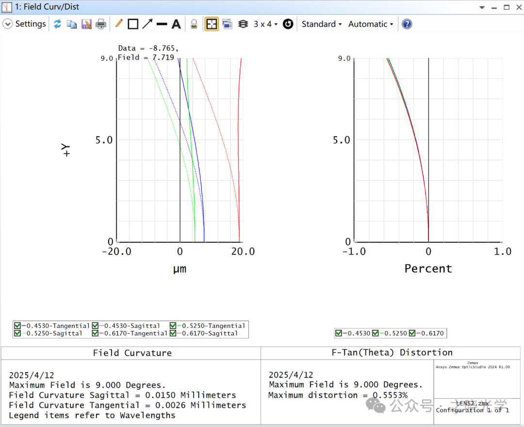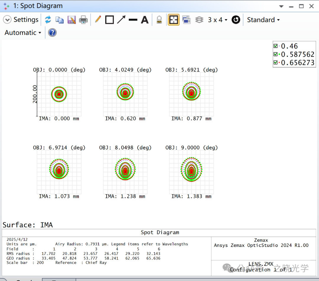 初步调整之后该系统的像差看起来还是比较大的,但是没有出现什么严重问题,后续我们只要一点点优化调整就可以了。这个地方我们可以保存一下文件,作为正式优化的起点。