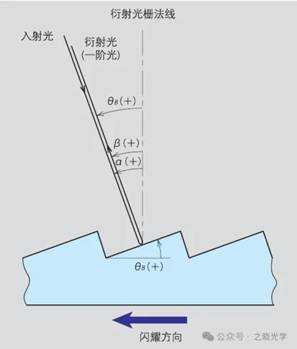 通常情况下,光栅采用闪耀光栅,在特定阶次和波长要求下具有高衍射效率的特点。如图2-2所示,对于闪耀光栅的主闪耀波长有: