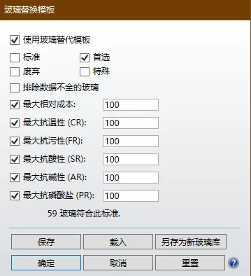 另外,我们也需要根据实际情况,将玻璃模型更改为实际玻璃库里的玻璃,这里我就只加载成都光明的玻璃库,如果一直使用玻璃模型,色差的计算将不够精确。