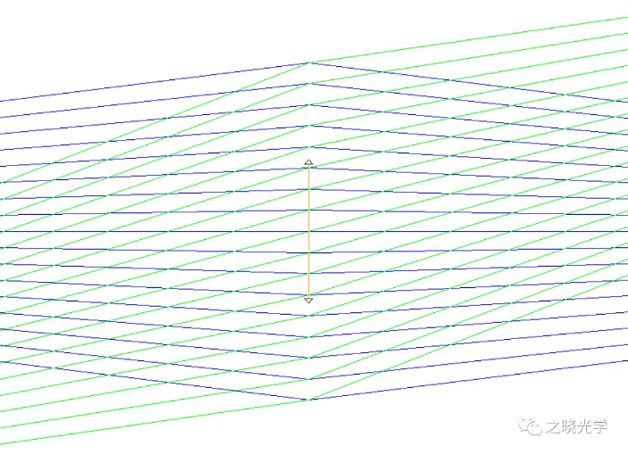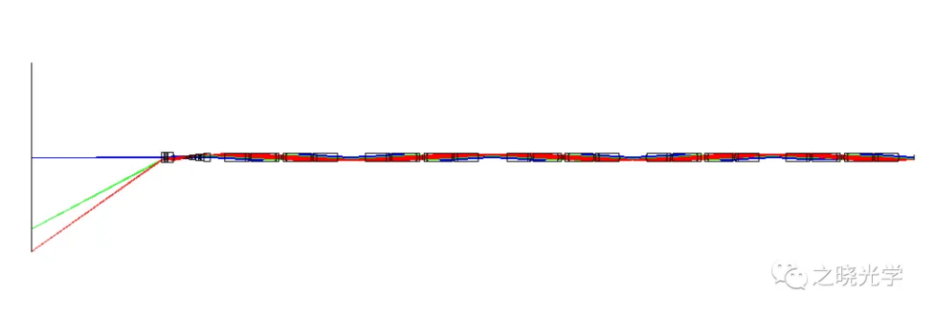 此时能进入光学系统的的光束范围仍被限制,起作用的正是最前方的入瞳。此时入瞳经过后方的光学系统成虚像,出瞳的虚像在像面前300mm,我们将孔径光阑直接设置在出瞳位置,此时进入光学系统的光线范围没有发生变化,如图4所示。