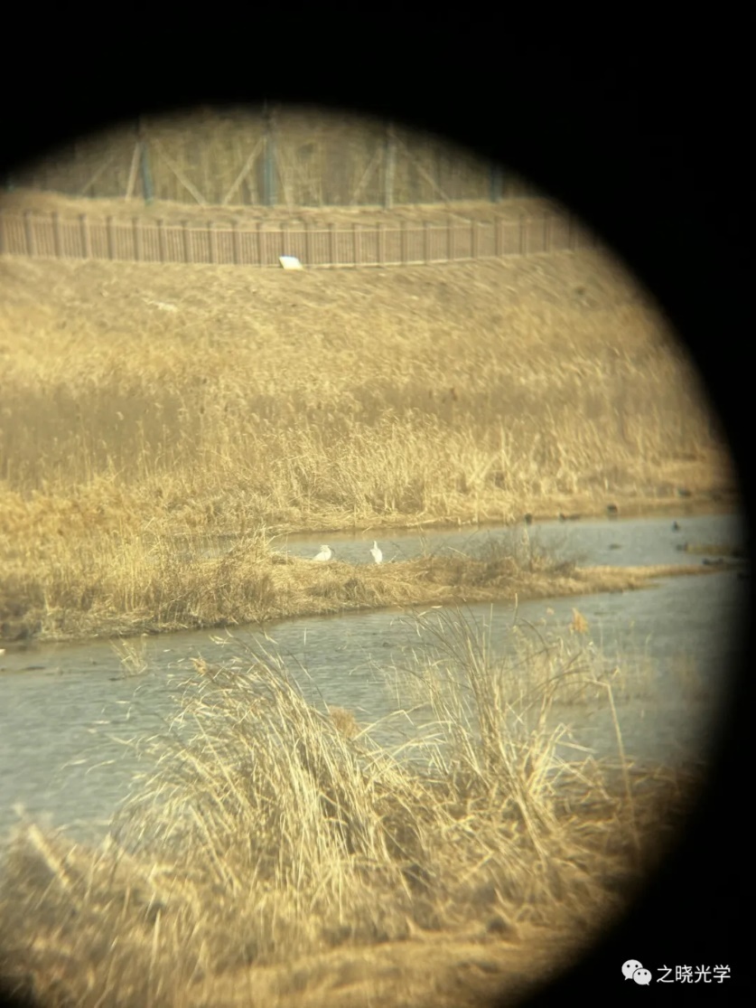 图6 手机通过望远镜拍到了岸边的朱鹮