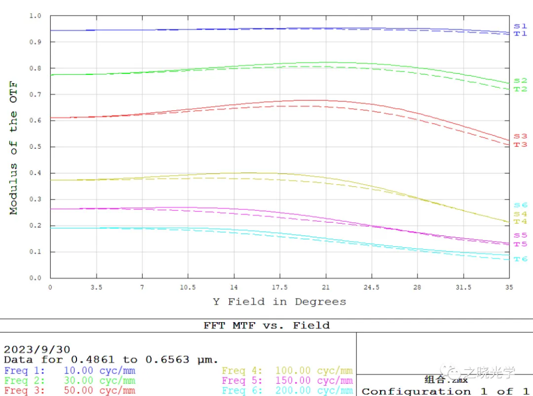 图13 光学系统MTF曲线