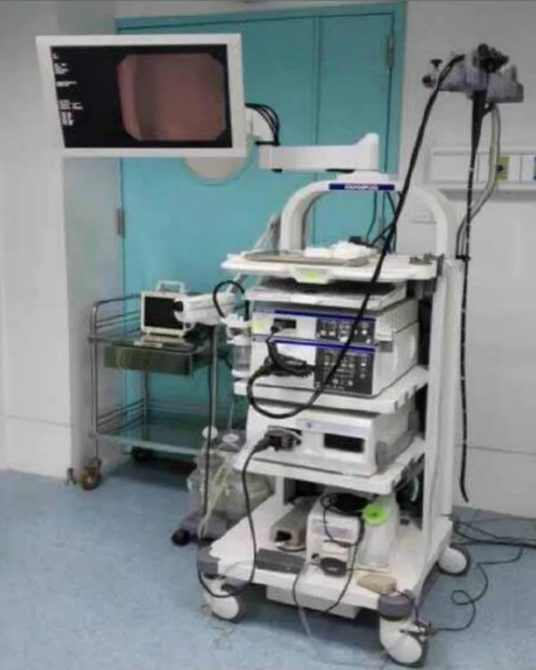 电子内窥镜是随着电子技术的迅速崛起而被人们研究出来的,其与硬性内窥镜的区别是应用固体摄像元件和大规模使用集成电路,加入了 CCD、计算机、半导体、小型摄像机等先进的科学技术。通过图像传感器(如CCD或CMOS)直接获取并数字化图像。图像通过显示屏实时呈现,分辨率和图像质量更高,且可以通过计算机对图像进行后处理,如放大、记录、存储和再现。在 1983 年,Welch Allen 公司研究生产了一款加入了高精度的图像传感器 CCD 的电子内窥镜,与以前的内窥镜相比该电子内窥镜成像更加清晰、分辨率更高。20 世纪 80 年代后,随着各种技术的不断发展与成熟,研究与生产、加工电子内窥镜的技术也愈加成熟。电子内窥镜的在光源方面,也越来越先进,其均采用高亮度的冷光源,具有高亮度、寿命长、低热量等特点。电子内窥镜的种类也变得更多,来满足不同部位、不同人群的需要,如图 1.2 为奥林巴斯电子胃镜 CV-290。图中的电子胃镜主要由内窥镜镜头、电视监视器和信息中心这三部分组成。电子内窥镜的主要特点是在检查时可以减少病患的痛苦,节约时间;由于图像分辨率高,所以医生可以更加清晰得观察病变组织,更加准确得判断病变组织,并对此进行诊断及治疗。