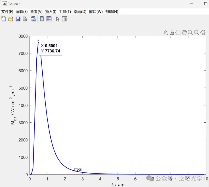 我们可以在matlab中编程仿真一下普朗克定律,输出的普朗克函数如下图所示: