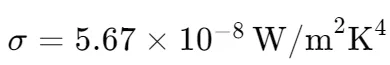 斯特藩-玻尔兹曼定律描述了黑体辐射的总能量与温度之间的关系。该定律指出,黑体的辐射功率(单位时间单位面积发射的总能量)与黑体温度的四次方成正比。该定律本质上描述的是普朗克定律的波段内能量,数学表达式为: