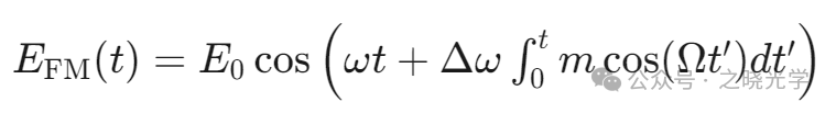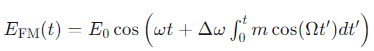 类似的,频率调制(FM)通过改变光波的频率 ω 来携带信息: