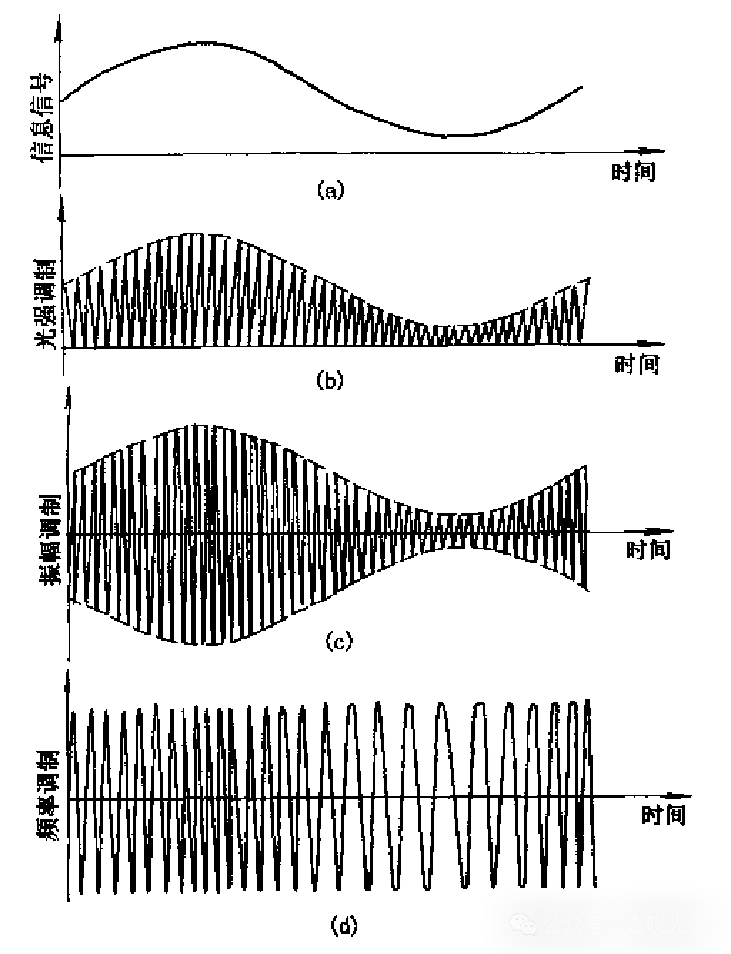 调制的形式主要包括模拟调制、脉冲调制和数字调制,对于模拟调制,光波的电场强度可以表示为: