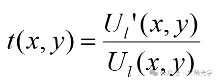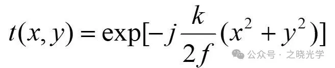 为了让大家熟悉光学系统频谱分析的方法,我们先举一个简单的例子,如下图所示,定义透镜的复振幅透过率: