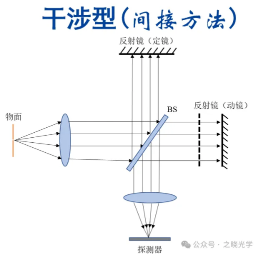 利用干涉图和频率之间的对应关系,还有干涉型成像光谱仪。通过控制光程差使其发生干涉,在探测器像面处得到干涉图样,并通过傅里叶逆变换反演得到目标的空间和光谱信息 。