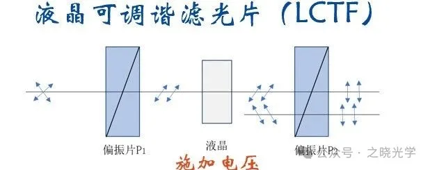 液晶可调谐( LCTF)滤光片由多个利奥( Lyot )滤波片级联构成, 利奥滤波片由两个偏振片和一个液晶层构成,其结构如图 2-10 所示。当对液晶层施加电压时,可改变液晶层对波长为λ0 的入射光的折射率,进而改变液晶层对波长为λ0的入射光的透过率,使其在中心波长为λ0 时达到最大透过率。因此通过调节电压大小可实现对任意中心波长的光谱选择,从而实现光谱分光 。