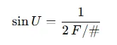 当角度较小时,U≈tanU≈sinU,例如著名的阿贝正弦条件,推导时即采用了这样的近似。像方孔径角的定义同理,根据定义,像方F数和孔径角U'之间可以有如下近似公式: