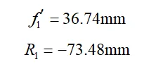 探测器长度根据指标确定为6.4mm,因此第二反射镜有焦距: