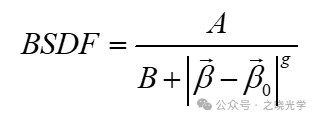 ABg模型,也称为准幂数倒数模型,适用于粗糙度小于入射光波长的光滑介质表面属性建模,可通过修正的Harvey模型得到。一般的情况下ABg模型的精度已经满足仿真需要,其表达式为:
