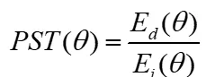 点源透过率(PST,Point Source Transmittance)是评价不同离轴角度下光学系统杂光抑制能力的指标。它的定义为:离轴角为θ的点源辐射,经过光学系统后到达像面的辐照度与光源在光学系统入瞳处的辐照度的比值,表达式为: