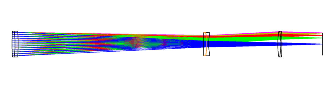 先介绍一下分析对象,这个是之前我打算DIY深空摄影的镜头,F数15,焦距720mm,视场对角线像高22mm,结构如下: