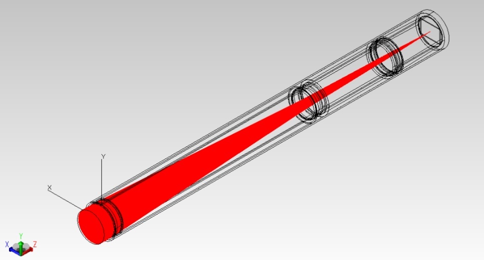 通过这些参数的合理设置,可以更准确地模拟鬼像的产生和传播路径。其实很多时候鬼像只在一定的特定角度才会出现,以及各种表面的特性往往也和实际情况有差别,所以鬼像一般还是以实际镜头的测试为准。利用软件仿真的目的是尽量排除一些潜在的问题和可能性。把机械模型导入进Tracepro,应用一下透镜材料和各种零件的表面参数,我们先设置一个表面光源,让它发出平行光,光线数为30000,发出的光线充满入瞳,在分析模式下,我们可以检验一下模型是否有问题。