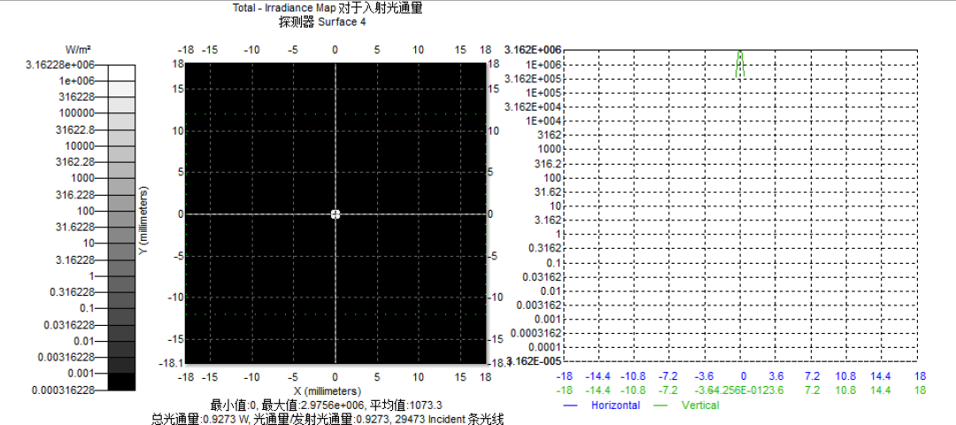 在设置好参数后,我们可以开始进行仿真。Tracepro可以提供详细的鬼像路径分析,帮助我们了解光在系统中的传播情况。按照上面设定好的模型,我们直接开始光线追迹,结果如下: