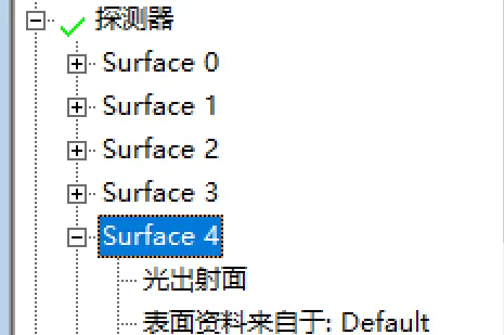 模型看上去并没有问题,接下来我们就可以进行鬼像的仿真了,设置发散角为 0°,辐射功率为 1W 的平面光源,并保证光线充满相机入口。追迹光线总数30万条,先按照阈值1E-6进行追迹,取特定角度1.4°,光谱区为系统指标波段,。这里要注意的是追迹光线数,为了准确的反应鬼像与正常像点的照度关系,我们大量提升了追迹光线数,针对不同的系统,我们可以逐步提升追迹光线数直到仿真结果稳定,另外,为了避免电脑内存不够用,这里需要用仿真模式进行追迹,设置探测器面为光出射面,设置保存相应的光线路径和数据,具体操作如下图所示:
